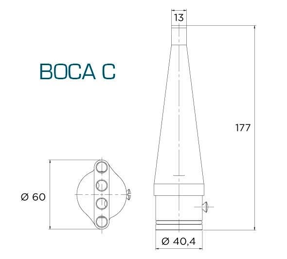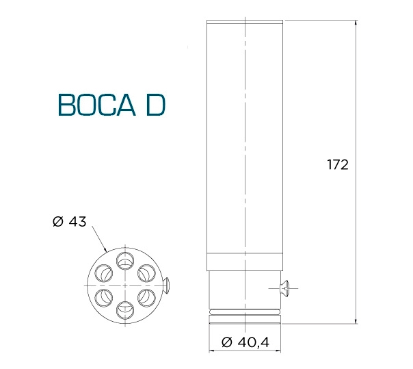 Incluye perno inoxidable para la fijación de la boquilla al cañón.