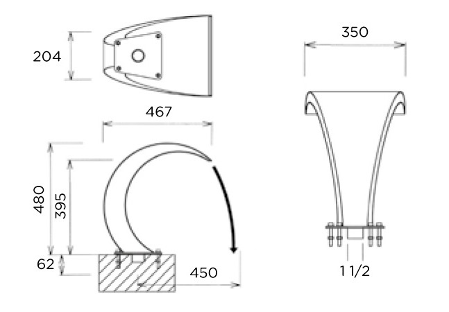 En esta versión Mini del modelo Bali no es necesario la instalación de un soporte previo a su montaje, ya que en la propia pletina soldada a la cascada posee 4 orificios donde fijarla mediante tornillos y tacos.