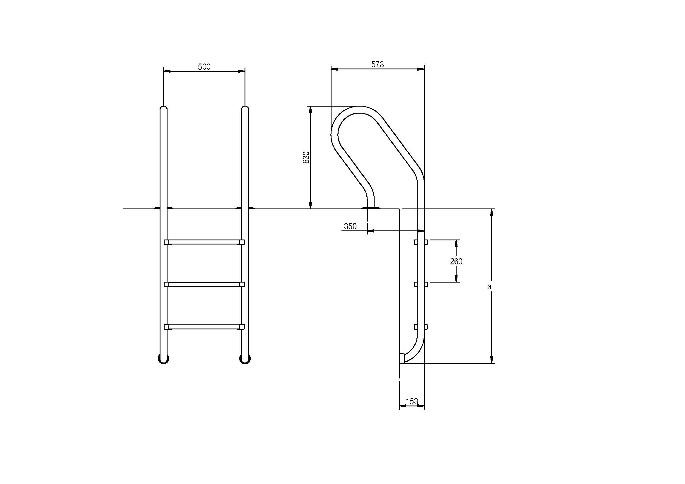 Fabricada en la máxima calidad con acero inoxidable, con tubo de tubo Ø 43 mm x 1,2 mm, los peldaños también están fabricados en acero inoxidable.