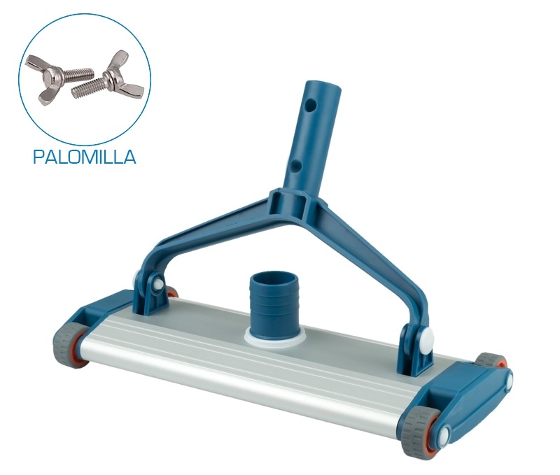 Limpiafondos para piscinas enterradas que permite un mantenimiento rápido y económico. Con medidas de 35cm de anchura. Con acabados en Inox y Aluminio y cepillo PVC para un mantenimiento básico de su piscina con carro de gran peso, para maximizar su adherencia al fondo y garantizar una total eficacia de aspiración.