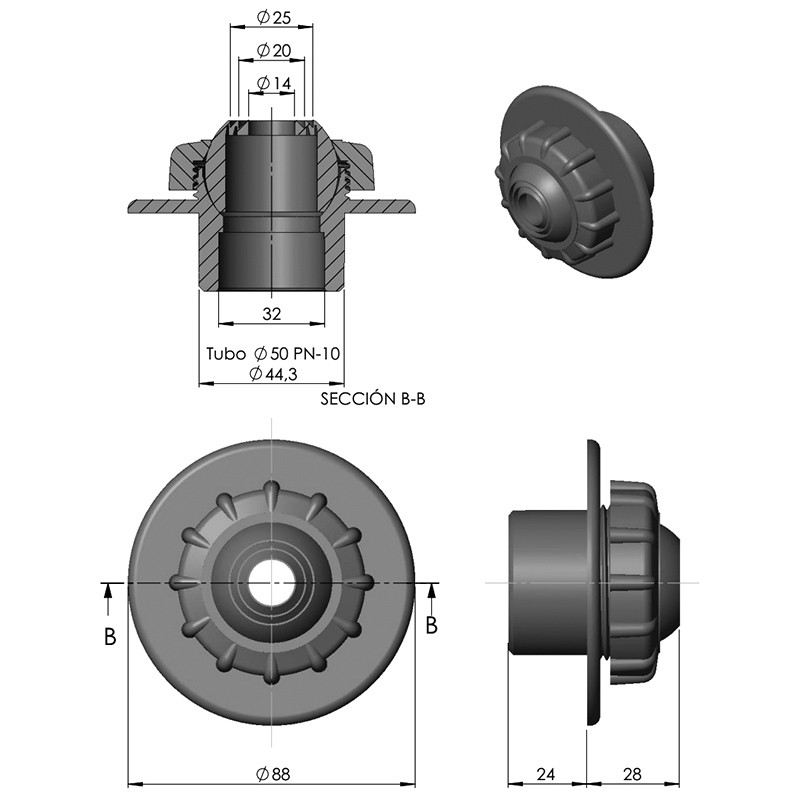 Recambios AstralPool | BOQUILLA IMPULSION PH PARA ENCOLAR | 24413
