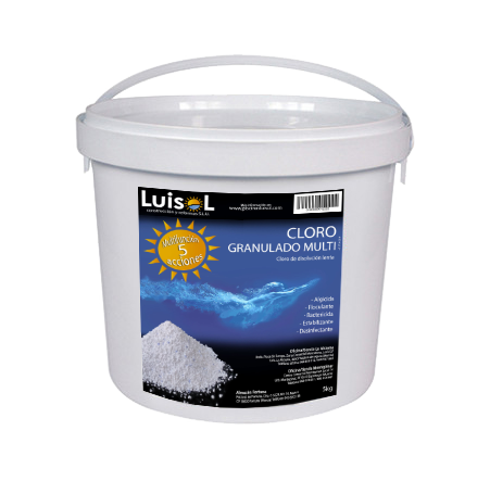 Compuesto sólido granulado, especialmente formulado para que con una sola aplicación, se consiga eliminar las bacterias, virus y microorganismos en general, evitar el desarrollo de algas y mantener el agua transparente y cristalina.