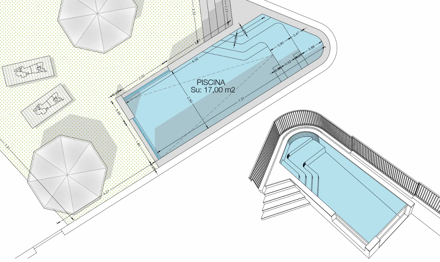 Creamos piscinas a medida con acabados de alta calidad y una ejecución precisa.