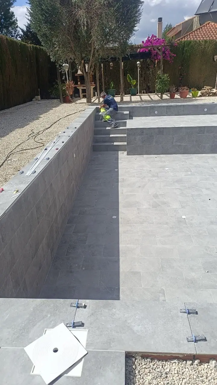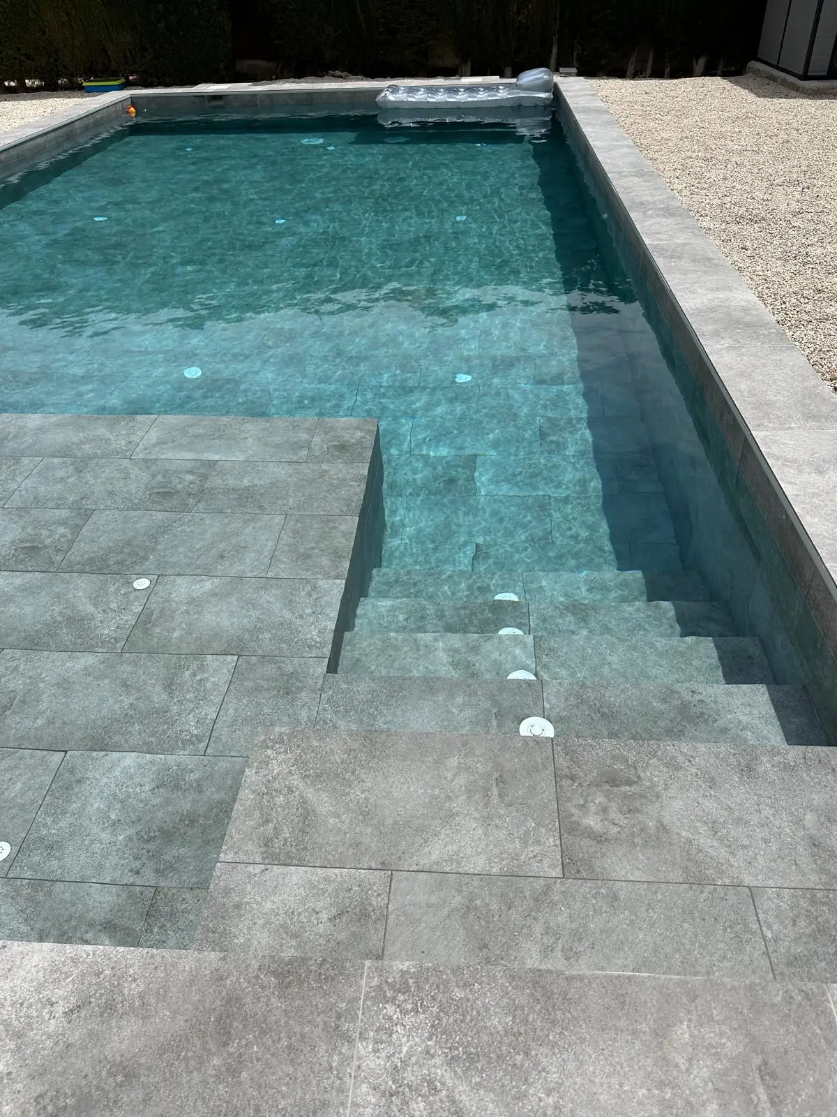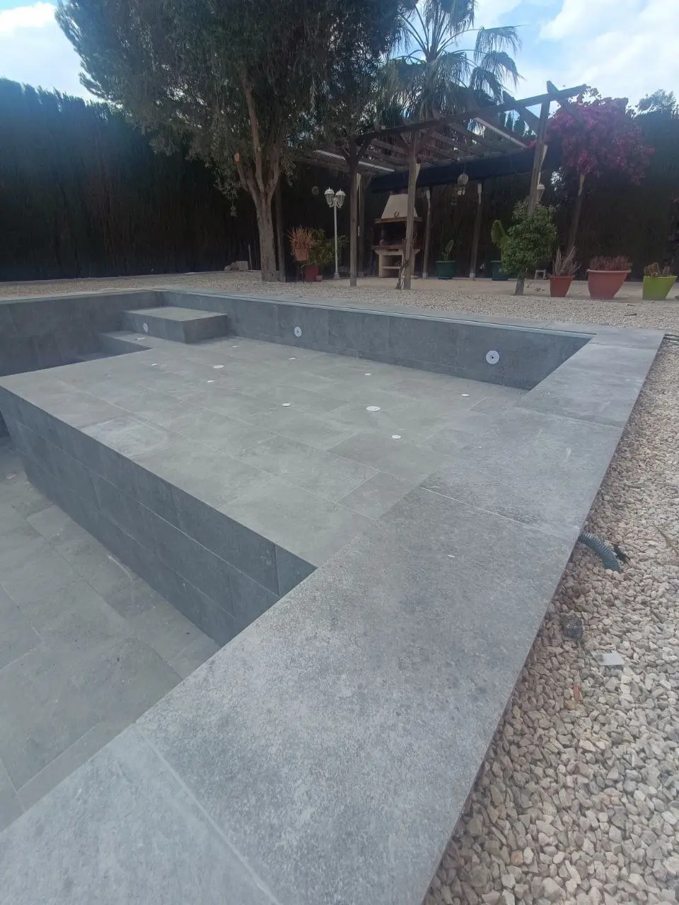 En este proyecto ejecutamos la construcción de una piscina de obra revestida con porcelánico, un material que aporta resistencia, durabilidad y un acabado sofisticado.
